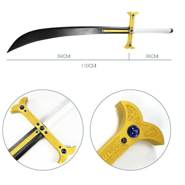 Plonge dans l’univers de Piece One avec cette réplique fidèle du sabre de Dracule Mihawk, l’un des personnages les plus redoutables de l’anime. Ce katana en bois de 110 cm est l’accessoire parfait pour les fans, les cosplayeurs ou les collectionneurs en quête d’un objet emblématique.